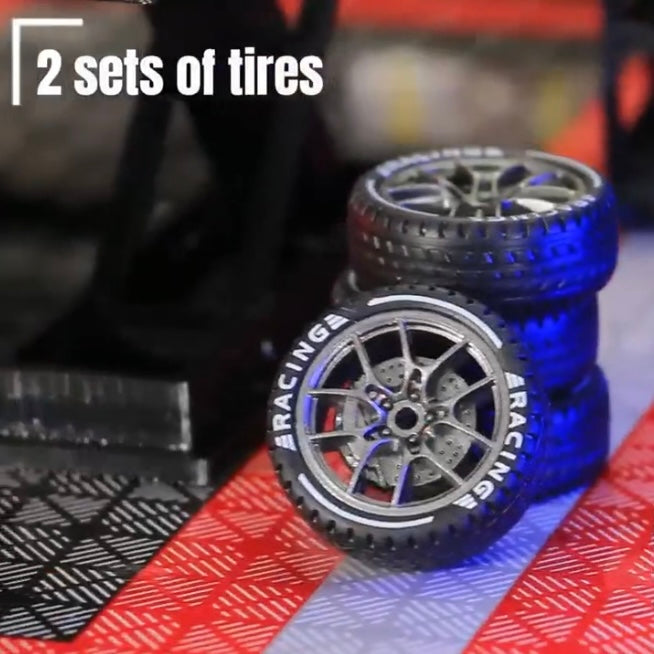 Customize your ride with 4 drift tires for smooth sideways action or swap to 4 straight tires for precision speed runs. Adapt to any surface and style in seconds.